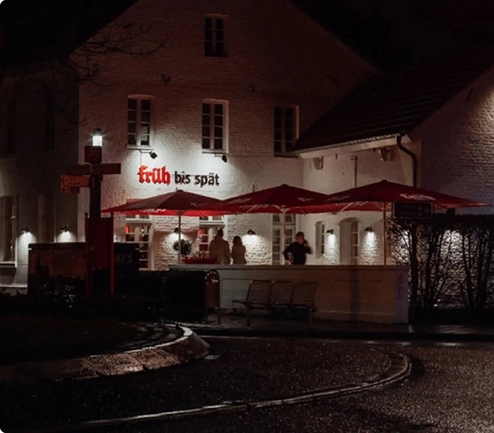 Im FRÜH bis spät Heinsberg verbindet sich kölsche Lebensart mit dem herzlichen Charakter des Kreis Heinsberg. Ob ein kurzes Kölsch nach der Arbeit, ein gemütlicher Abend mit Freunden oder ein gutes Essen für die ganze Familie: Wir servieren Dir Brauhausklassiker und saisonale Küche in entspannter Atmosphäre mit kölschem Gefühl.