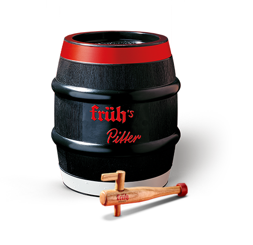 Ein Fassanstich will gelernt sein. Zapfbesteck aus Holz solltest Du vor Gebrauch einige Zeit ins Wasser legen. Der Hahn wird später mit dem leicht angefeuchteten Dichtungsgummiring gerade in die untere Öffnung des Fasses gedreht. Dabei muss der Zapfhahn geschlossen sein. Jetzt wird der Hahn mit einem oder zwei kräftigen Schlägen in das Fass getrieben. Zapfe anfangs vorsichtig. Der Innendruck des Fasses ist sehr groß. Nach einiger Zeit fließt kein Kölsch mehr aus dem Hahn, obwohl das Fass noch voll ist. Um das leckere FRÜH dennoch bis zum letzten Tropfen genießen zu können, schlage einfach den so genannten Fitting, das Ausgleichsventil, auf der Fassoberseite ein. Mit einem Entlüfter lässt sich die Luftzufuhr ins Fass regulieren.