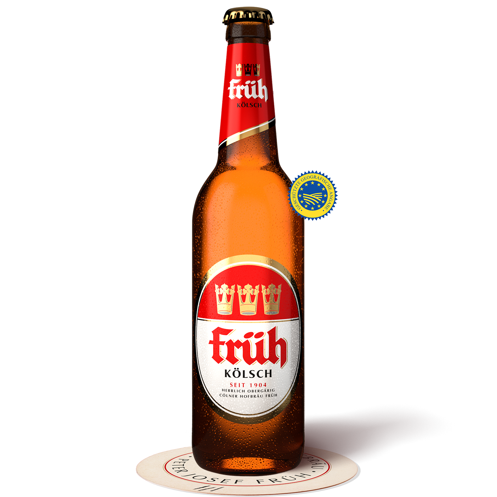 Das von der Europäischen Union vergebene g.g.A.-Logo steht für „geschützte geografische Angabe“ und garantiert, dass ein Produkt aus einer klar definierten Region stammt und dort nach festgelegten Kriterien hergestellt wird. Für Kölsch bedeutet das: echte Herkunft, geprüfte Qualität und traditionelle Braukunst aus Köln. Das Siegel schützt die Identität des Originals und schafft Vertrauen beim Genießer. Für FRÜH ist das g.g.A.-Logo ein sichtbares Bekenntnis zur Heimat, zur Brautradition und zum unverwechselbaren Geschmack unserer Stadt.